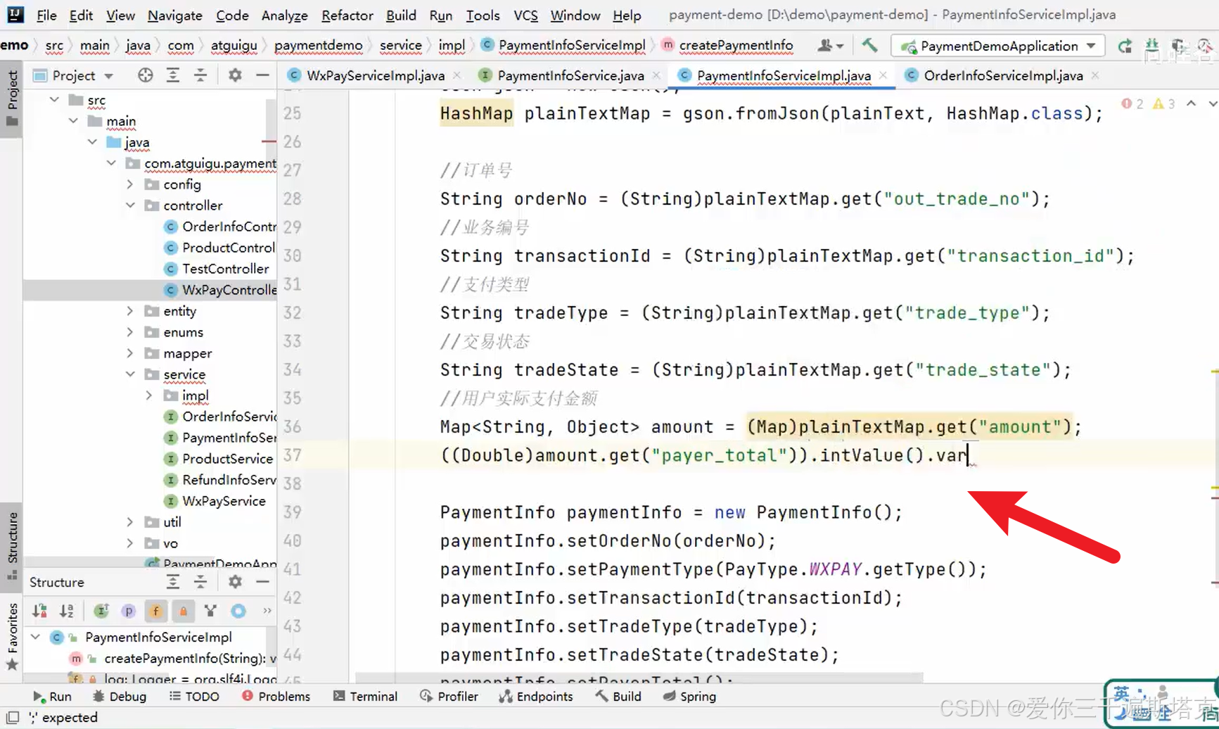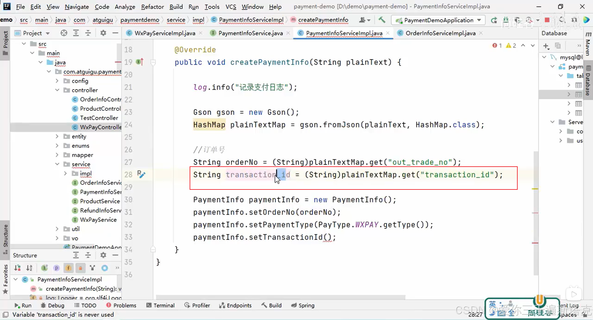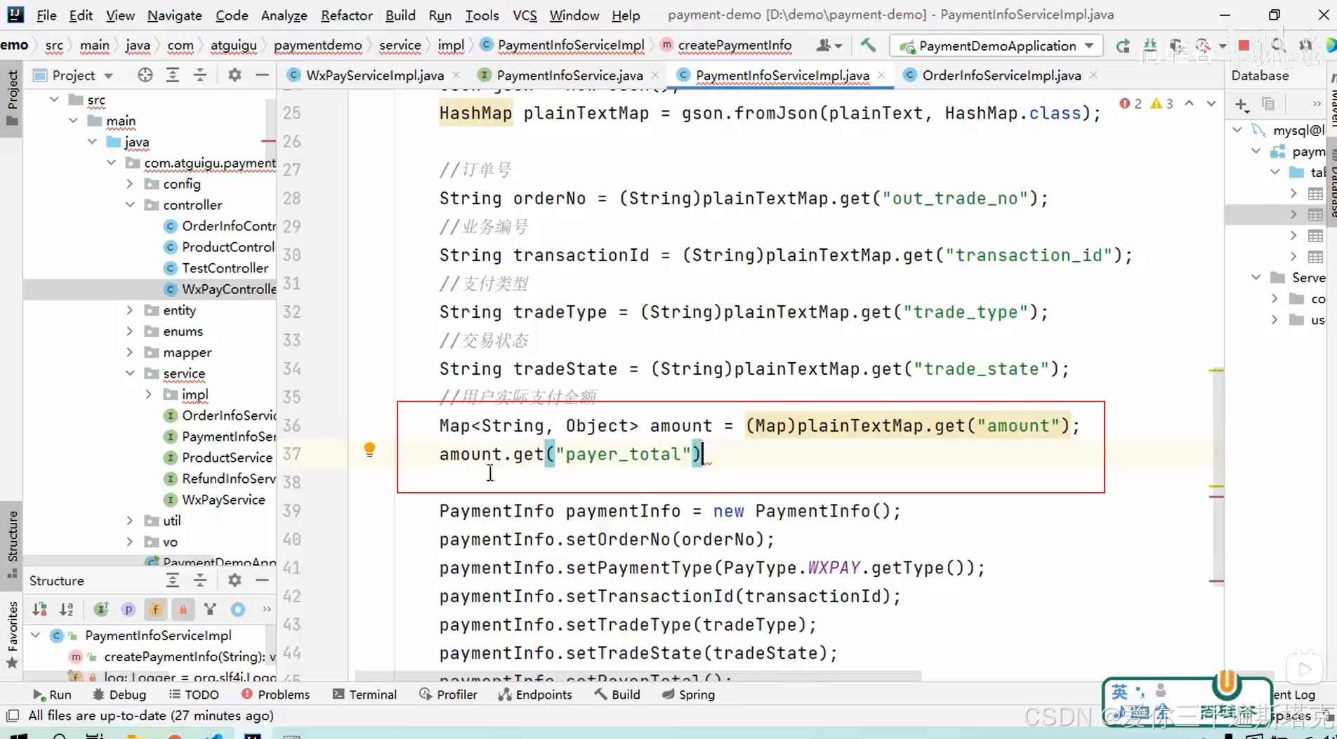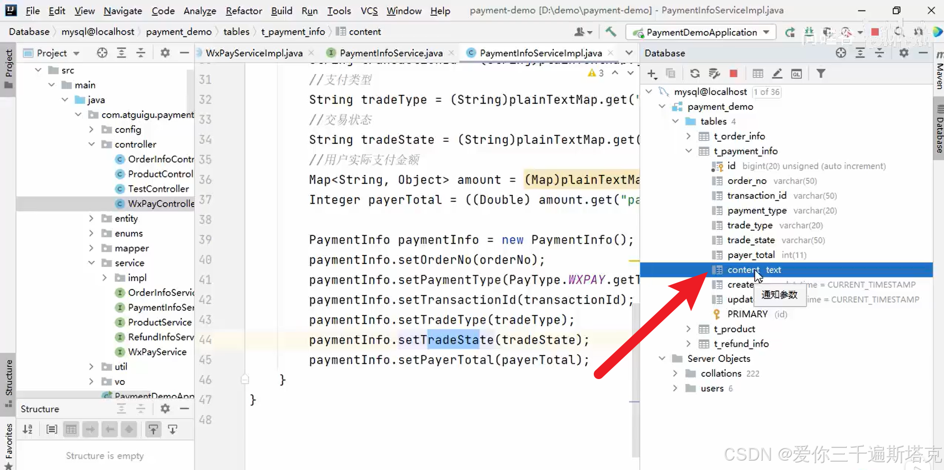 支付成功之后,用户的手机端已经接收到了支付成功的通知,但是我们数据库中的支付状态还是未支付的状态,先从TextMap拿到订单号