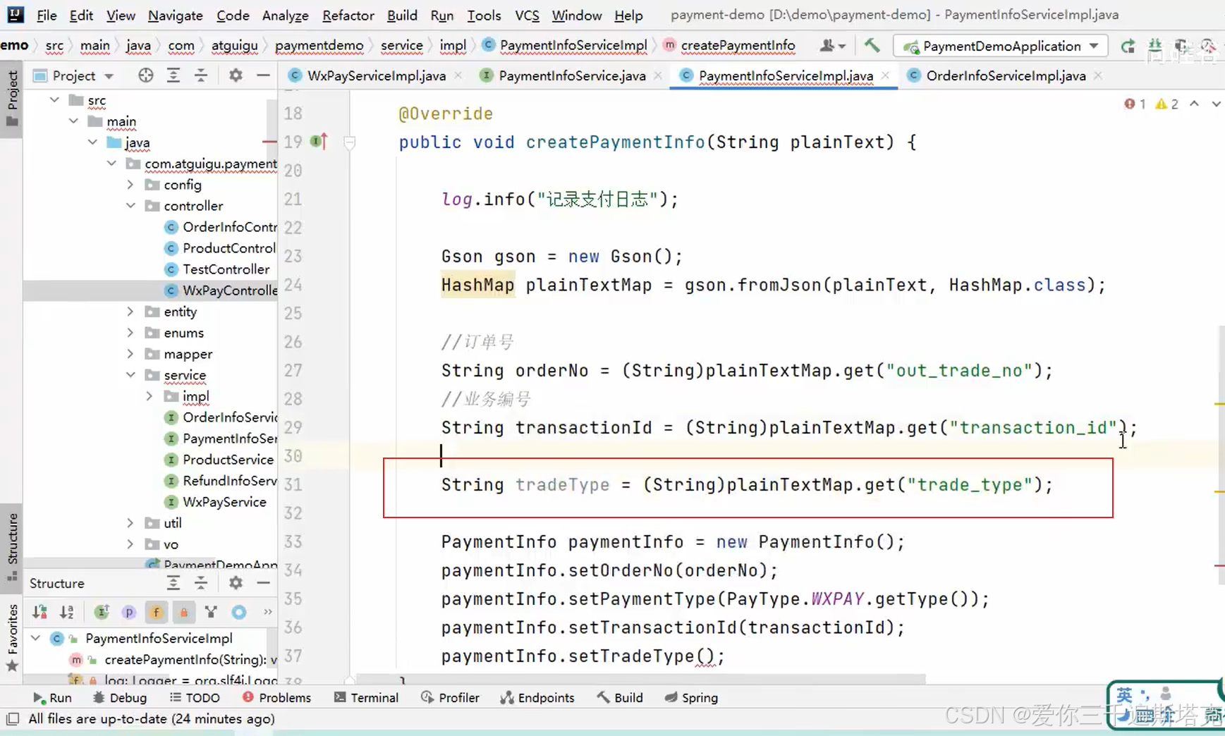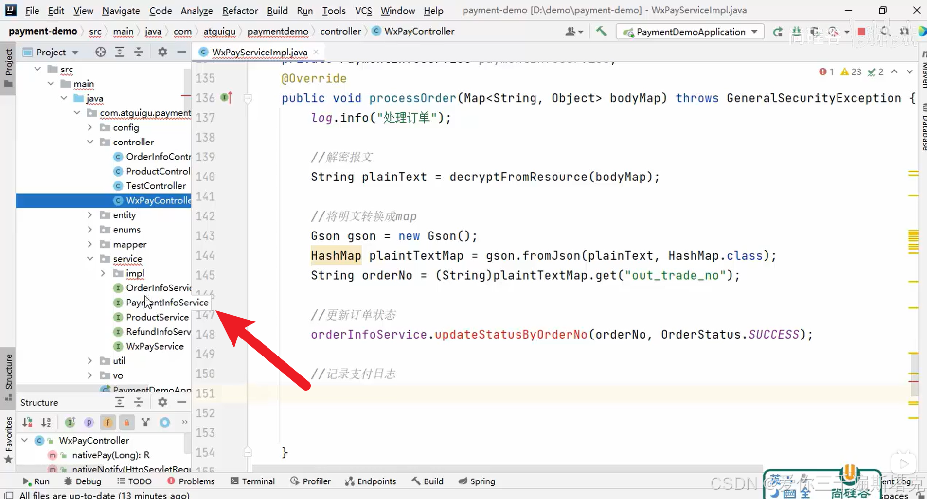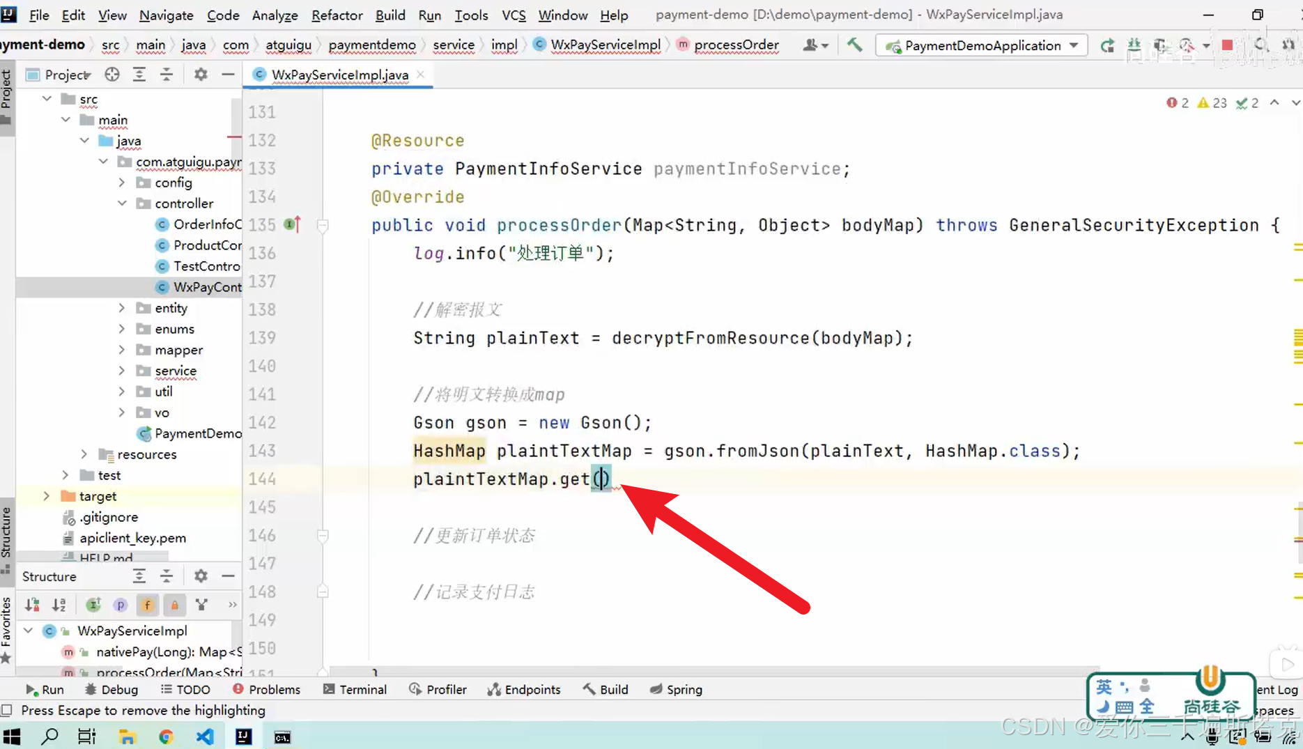 这一节,利用解密的报文进行处理,处理订单,有这样的工作要做,第一步是将明文,转换成map,把JSON字符串中封装的数据给它转换出来,去更新订单状态