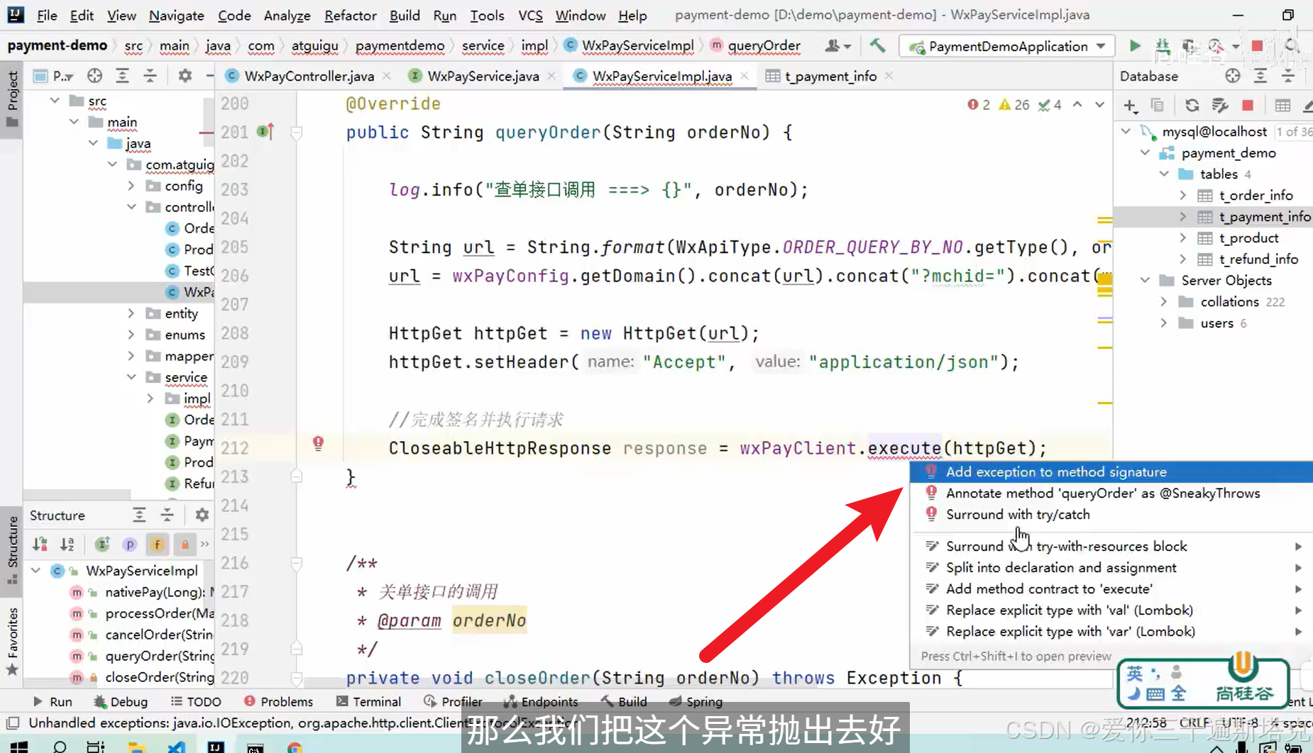 调用execute方法,把异常抛出去