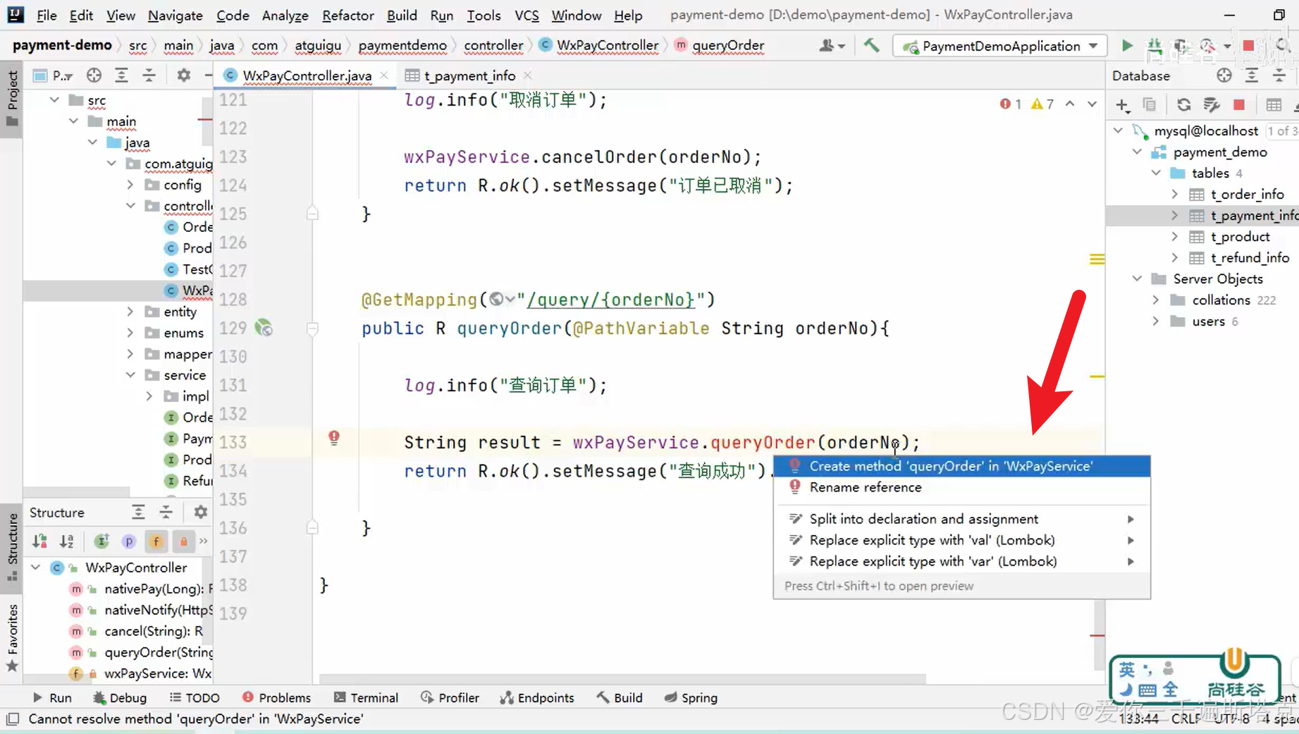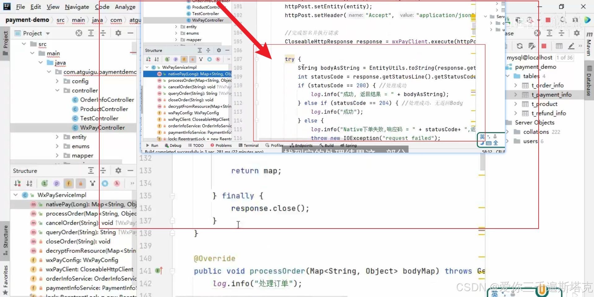 用第二种方法,查询订单并且获取返回值