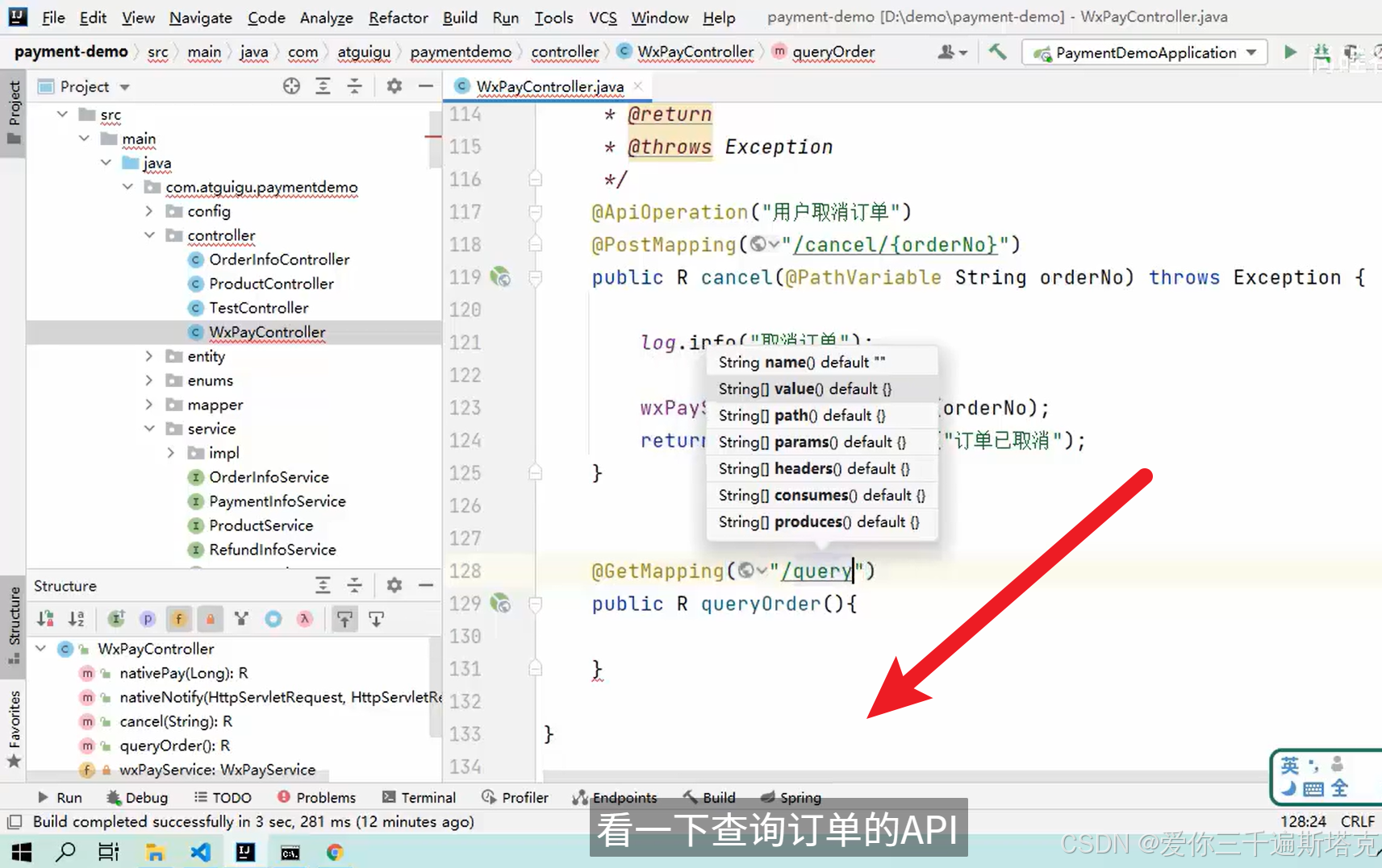 第一步,创建查询订单的API