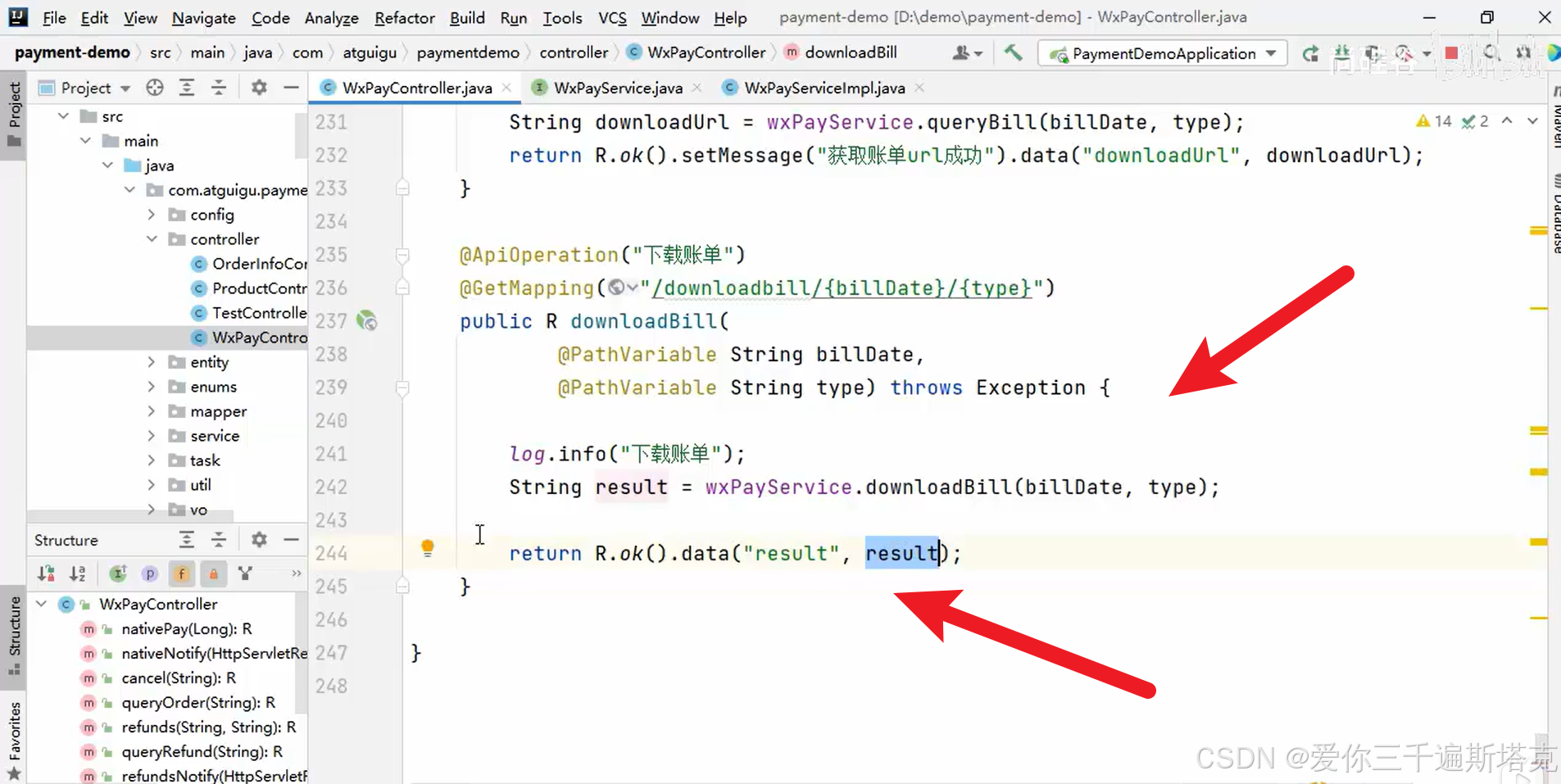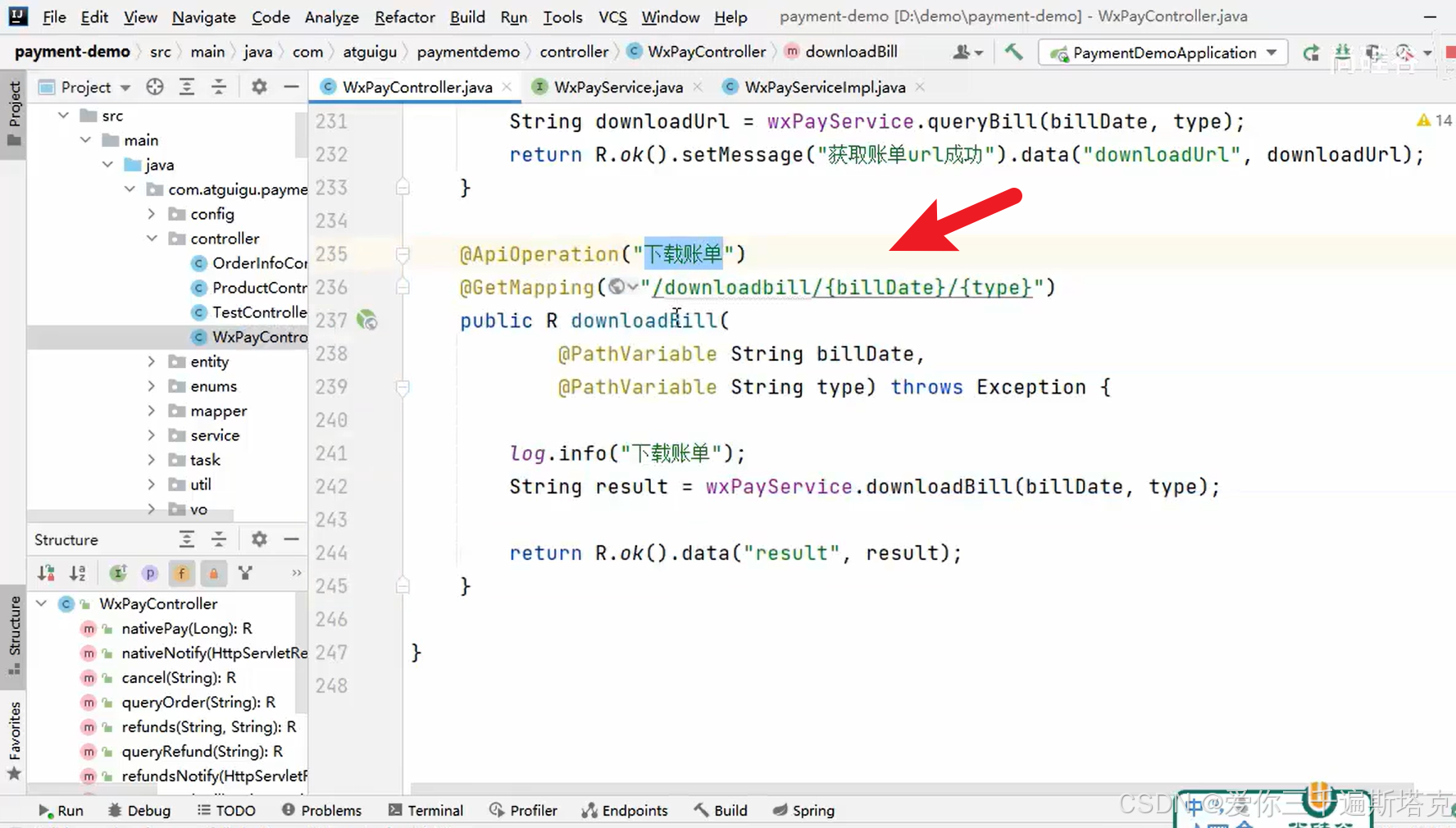 WxPayController最后一个下载接口就是下载账单