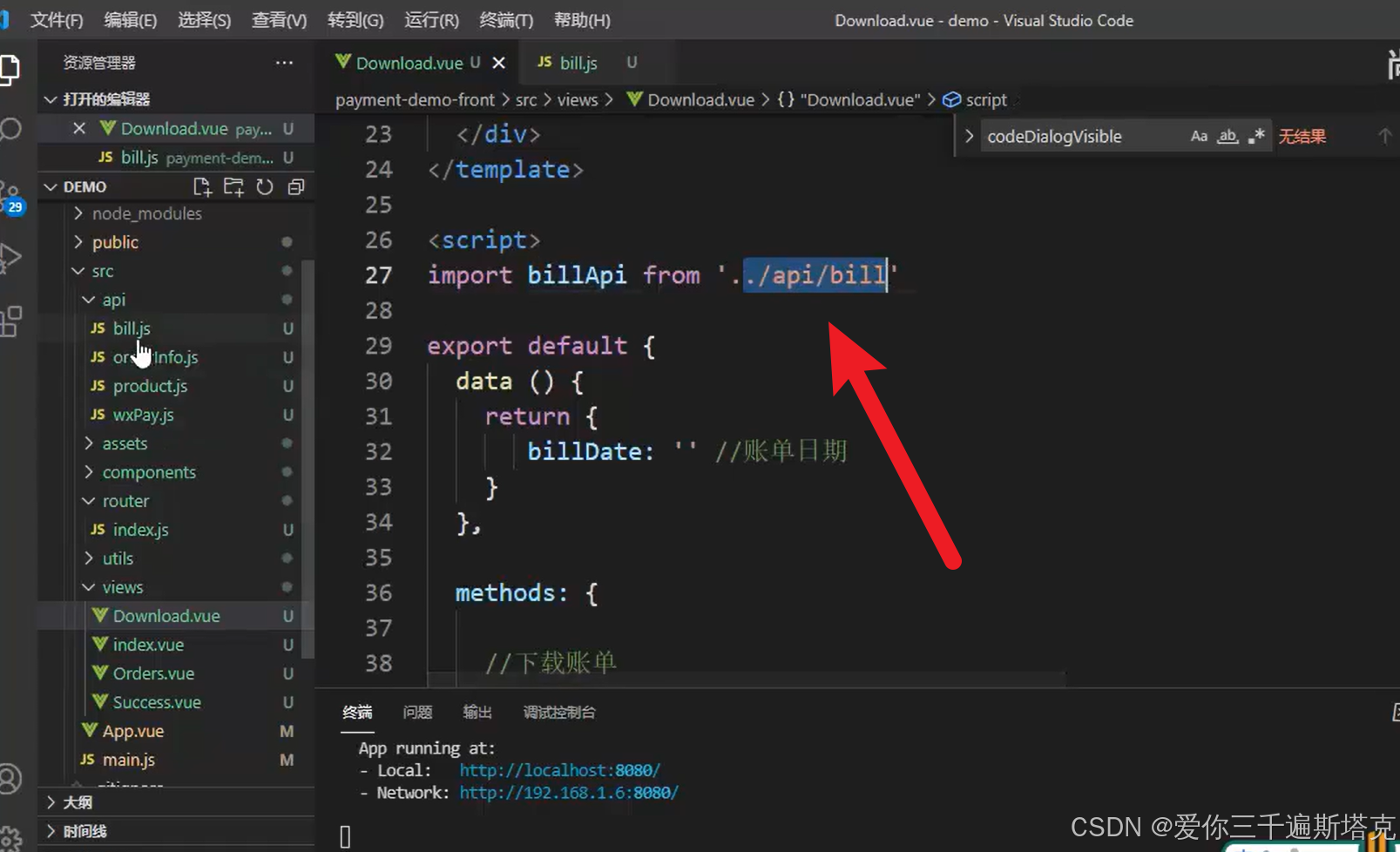 billApi就是api这个文件