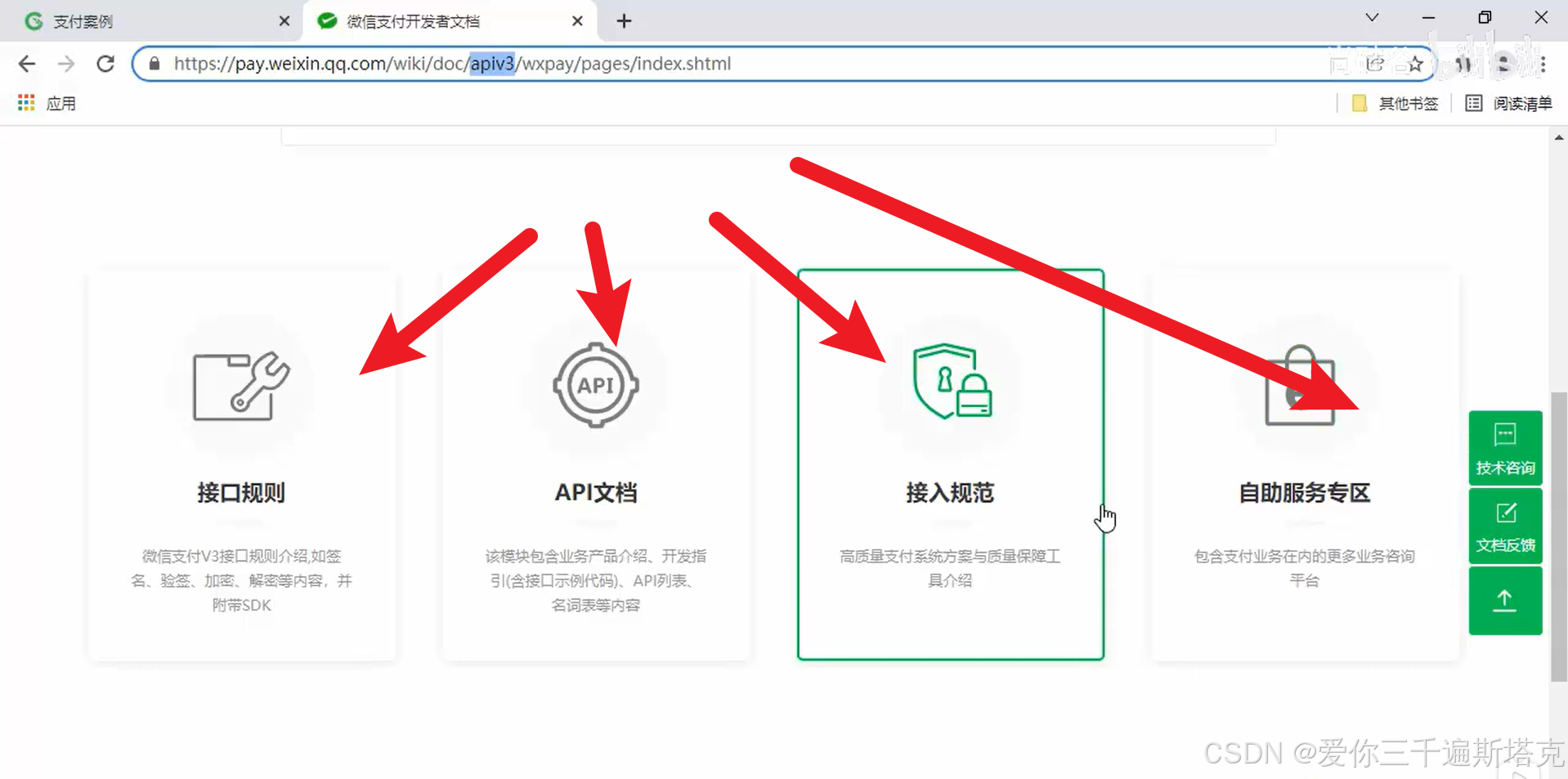 包括接口规范,API文档,接入规范,自助服务专区