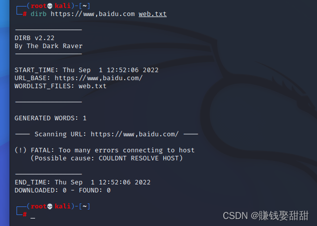 注:dirb只能扫描网站目录,而不能扫描漏洞