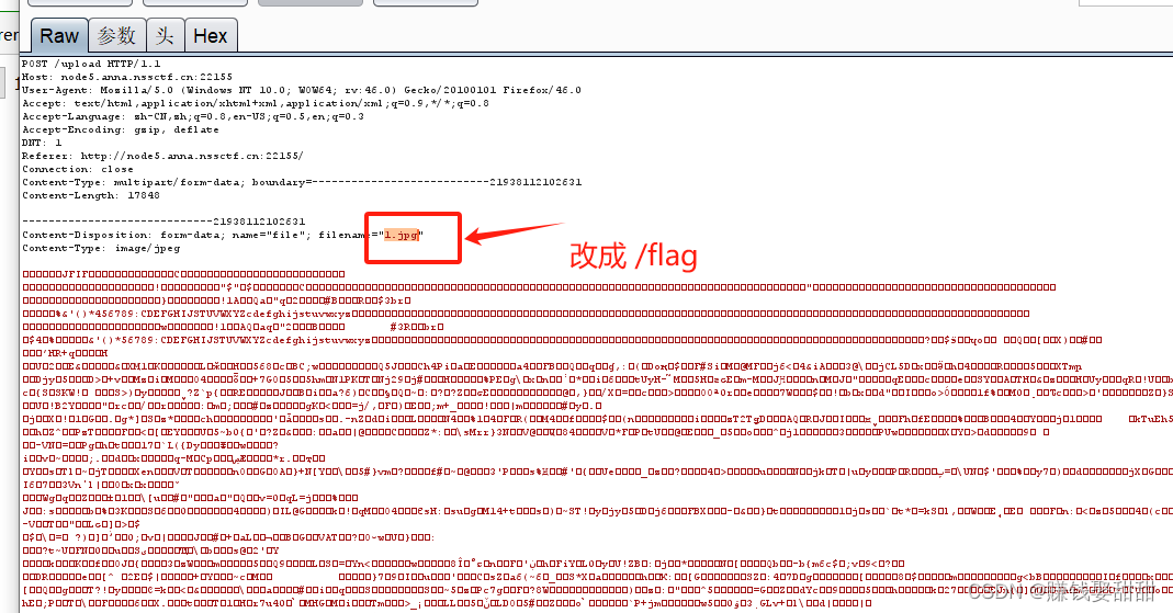 一般flag都是命名为flag文件,放在根目录下,我们可以上传一个文件,改名为/flag,利用os.path.join()这个函数