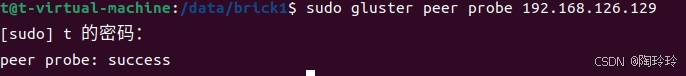 sudo gluster peer probe <第二台服务器的IP或主机名>