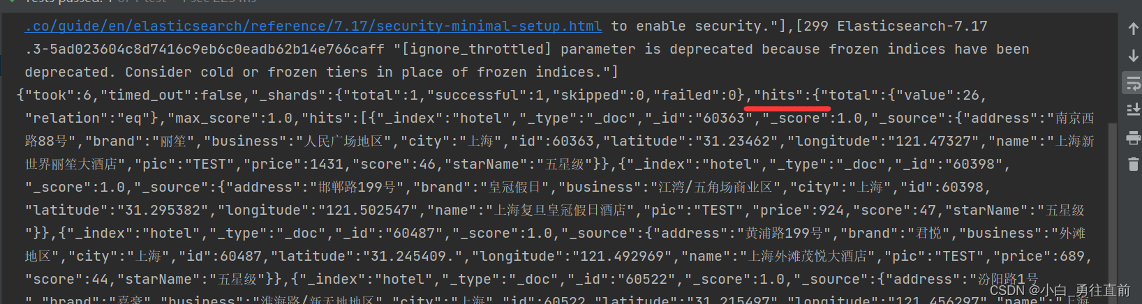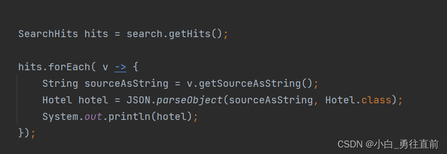 这个hits里面保存的就是我们要获取的主要内容,封装好的响应类里面提供了getHits方法帮助我们获取数据