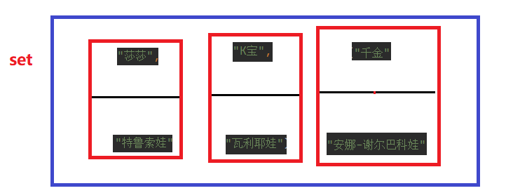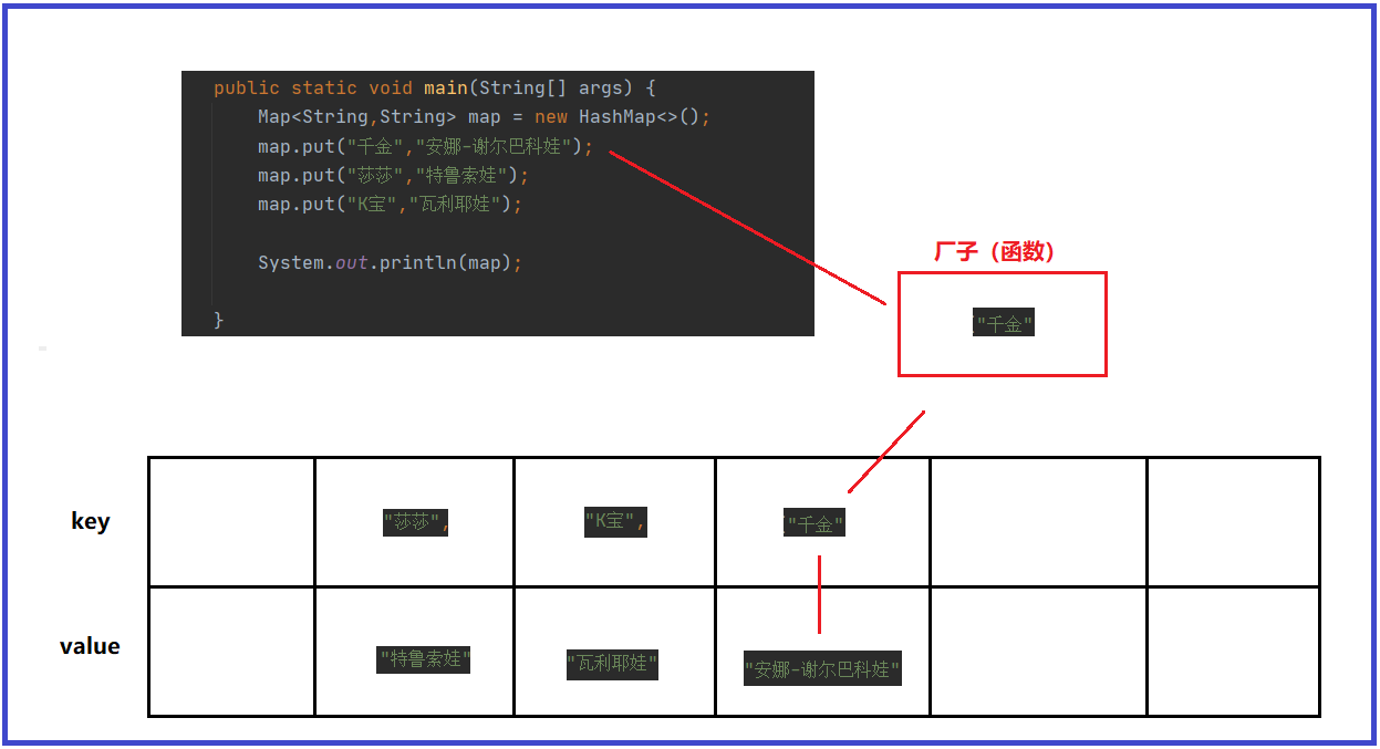 //写入就是put,前面的和后面的也就是K和V一一对应,比如千金就是安娜-谢尔巴科娃
