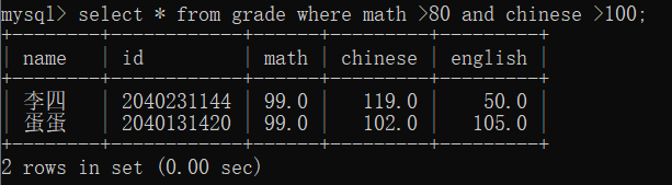 7. AND OR NOT,这里就是相当于是&&,||和!,判断语句是否为真的意思,比如:where math >80 and chinese >100;