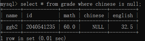 5.IS NULL/IS NOT NULL ,这里是专门用来比较空值的,比如:where chinese is null。