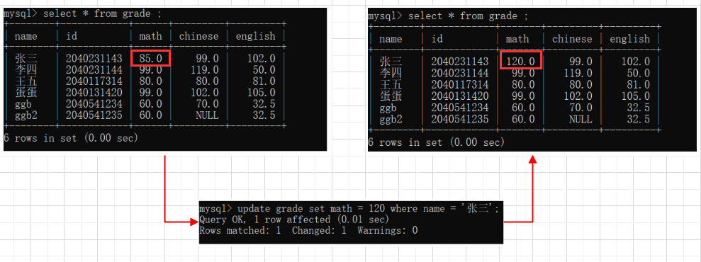 ❗️ 注意 !上面的查都是临时表,不会更改数据库服务器上的数据,但是这个就会改,所以在修改的时候一定要谨慎!