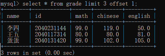 limit+offsetoffset就是查的起始位置,就是有起始位置查(例子从位置为1的地方开始往下查)