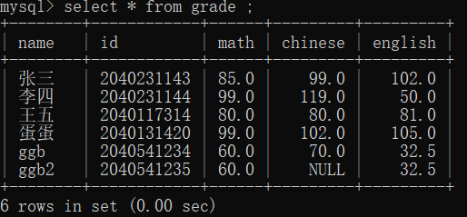 我们试一下: select * from student;