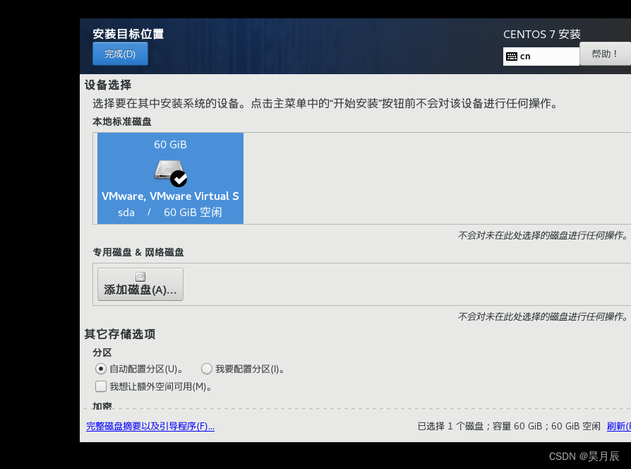进入安装位置,分区磁盘。,通常情况下没有特殊要求的时候我们可以选择 整个磁盘。
