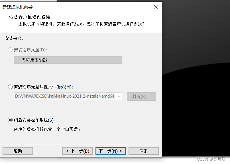 点击下一步,虚拟机硬件兼容性不用改,选择稍后安装操作系统: