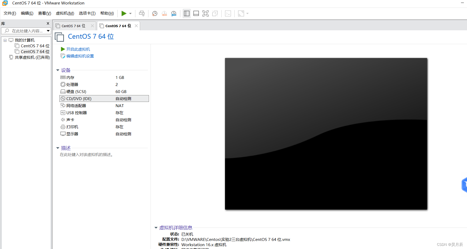 将光刻的位置改到刚才下载的centos 7 光刻的文件位置,然后点击确定,点击开启虚拟机。