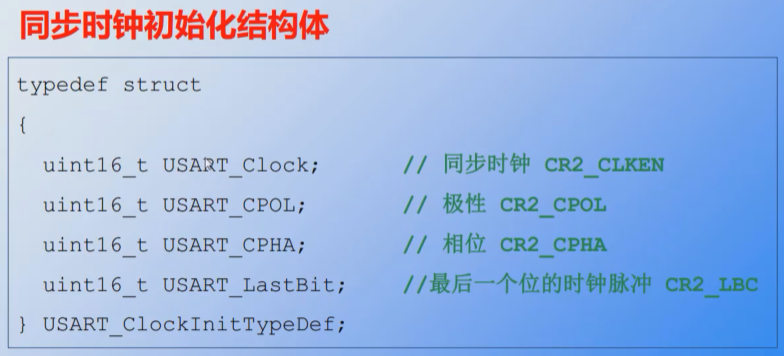 27-串口函数初始化介绍 使用固件库编程进行初始化,有很多寄存器,每个寄存器有很多位。如何知道从哪里开始,要初始化那些位?1:找到相应的外设C文件----找到头文件----他的头文件里面有初始化结构体----在编程的时候只需要编辑这些成员就可以----成员配什么值,怎么配置,看里面的描述2*:串口时钟初始化在同步通信中配置,异步通信不需要。1)CPOL---时钟的极性,控制无信号时电平的表示方法2)CPHA---时钟的相位,控制在时钟的第一个变化沿或者第二个变化沿捕获数据3:在编程时重点操作这个结构体: