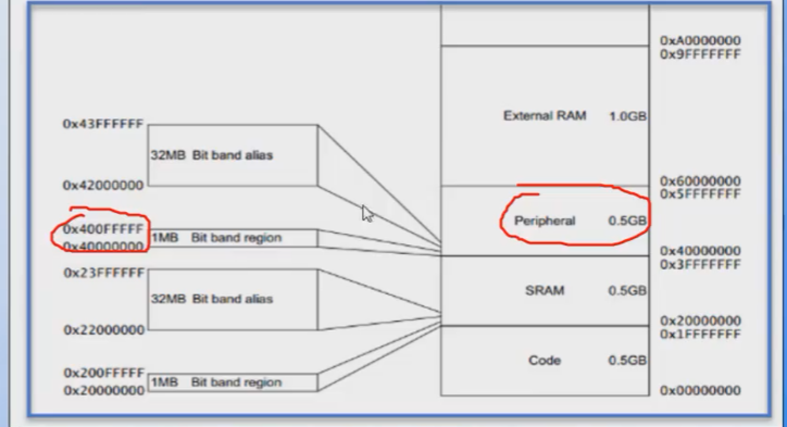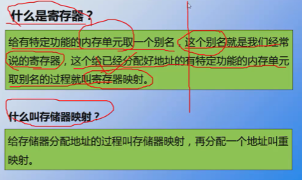10-寄存器映射 1:51单片机资源很少,然而32端口较多不适合j寄存器映射2:如何辨别方向:逆时针增长,小点到大点3:最多访问32G内核放在32GB—7个块4:寄存器映射对芯片里面的某个具有特殊功能的内存单元,取一个别名的过程。为了方便阅读采用寄存器的名字命名----寄存器映射//例如在51单片机中, sfr PA0=0x80;//关键字定义 PA0=1;//在32单片机中#define GPIOF_DDR *(unsigned int *) 0x40021414