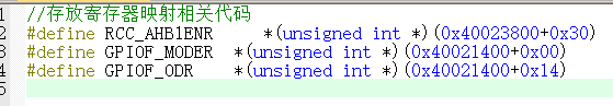 11-C语言对寄存器的封装 1:仅通过指针进行封装//在基地址基础上加上偏移地址#define GPIOF_BASE (0x40021400)#define GPIOF_BASE (0x40021400)#define GPIOF_BASE (0x40021400)#define GPIOF_BASE (0x40021400)#define GPIOF_BASE (0x40021400)#define GPIOF_BASE (0x40021400)#define GPIOF_MODER *(unsign.