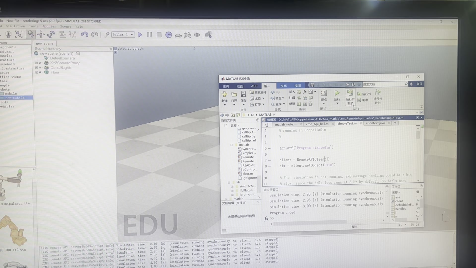 MATLAB与VERP/Coppeliasim联合仿真:配置ZeroMQremote API ZeroMQ远程API连接配置方法:(MATLAB与VREP/Coppliasim)ZeroMQ远程API允许从外部应用程序或远程硬件(例如真正的机器人,远程计算机等)控制模拟(或模拟器本身)。它提供了所有API函数,也可以通过CoppeliaSim脚本获得