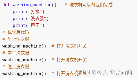 对于上述过程,我们实际上已经触及到了函数的核心意义。如果将这个人工洗衣的行为封装成我们日常使用的洗衣机,那么洗衣机的功能与作用就类似于函数在编程中的角色。洗衣机封装了重复性的洗衣步骤,使得我们只需简单操作几个按钮,就能轻松完成原本繁琐的洗衣任务。