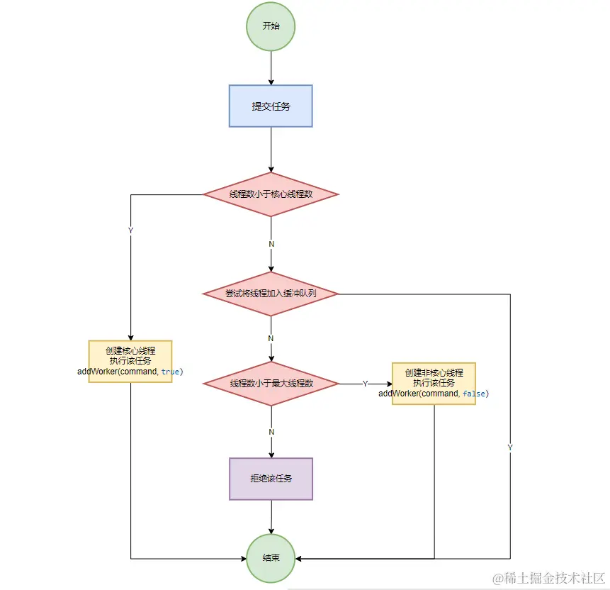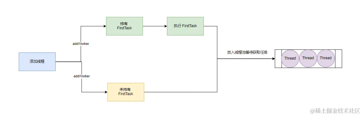 1、当线程数小于核心线程数,创建新线程执行任务