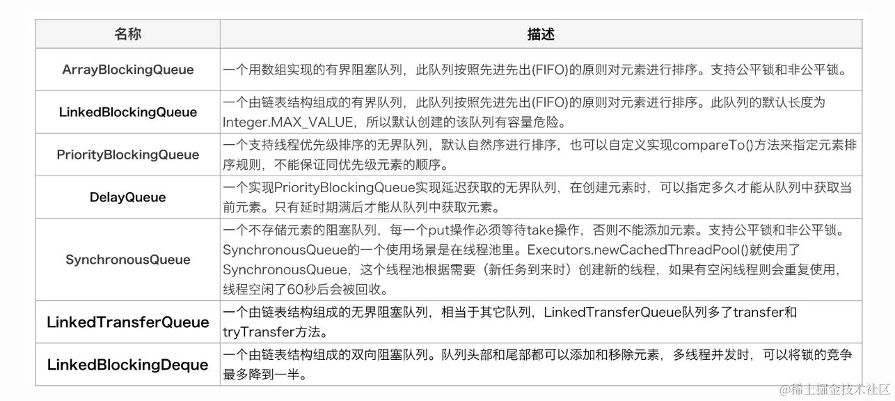 同时支持不同的阻塞队列来实现不同存取策略: