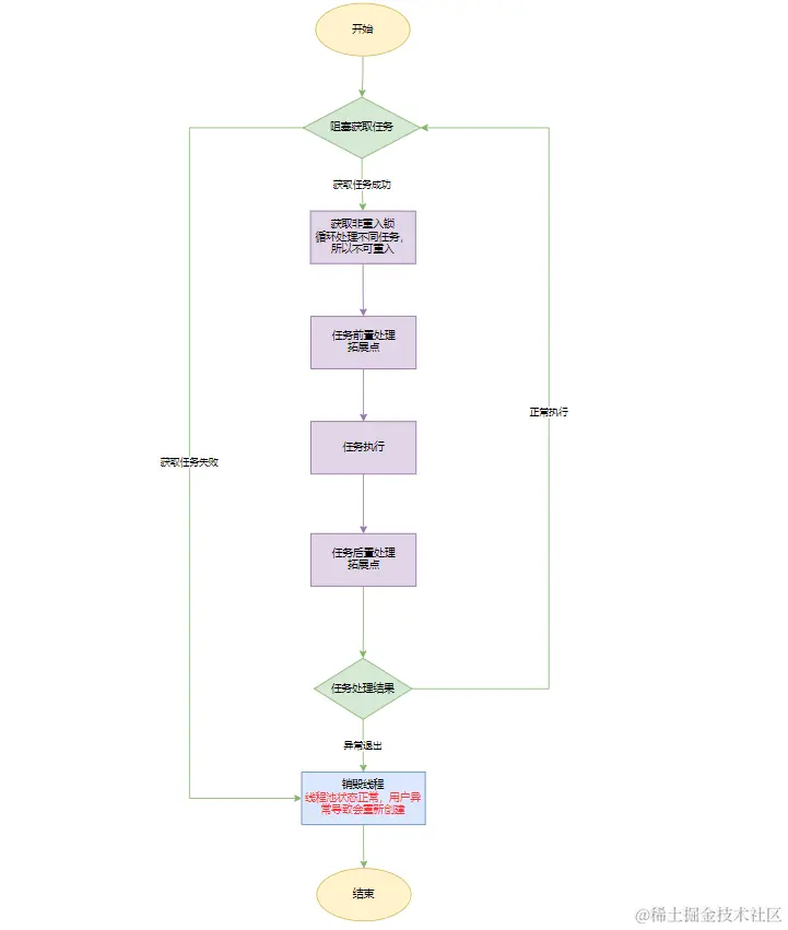 线程池的本质是使用解耦的思想将任务和线程管理分开,从而使用生产者-消费者的模式来对任务进行调度分配。