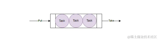 线程池通过阻塞队列实现生产者-消费者,在队列为空时,获取元素的线程会等待队列变为非空。当队列满时,存储元素的线程会等待队列可用。