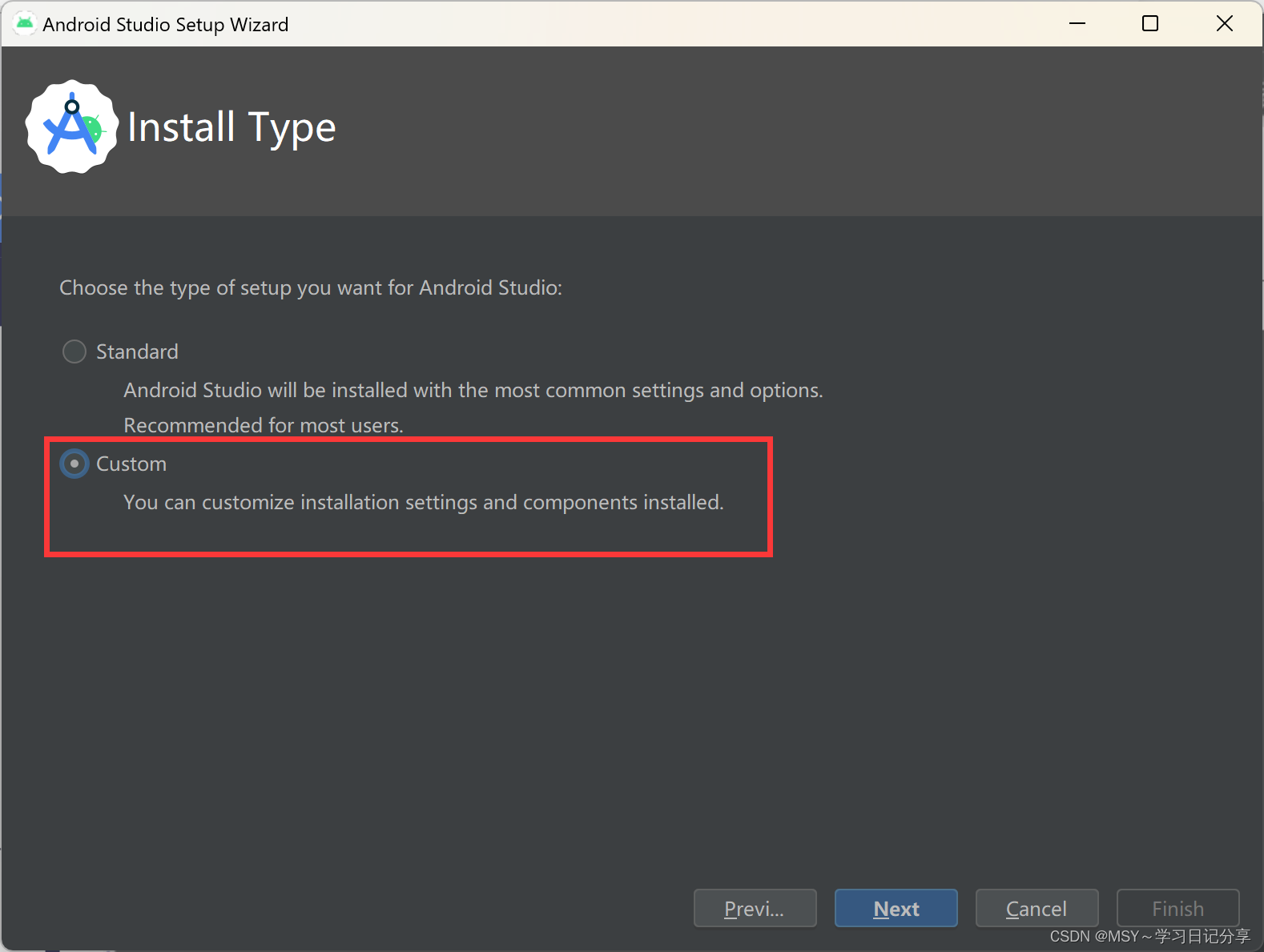 特别注意选择custom !