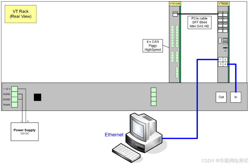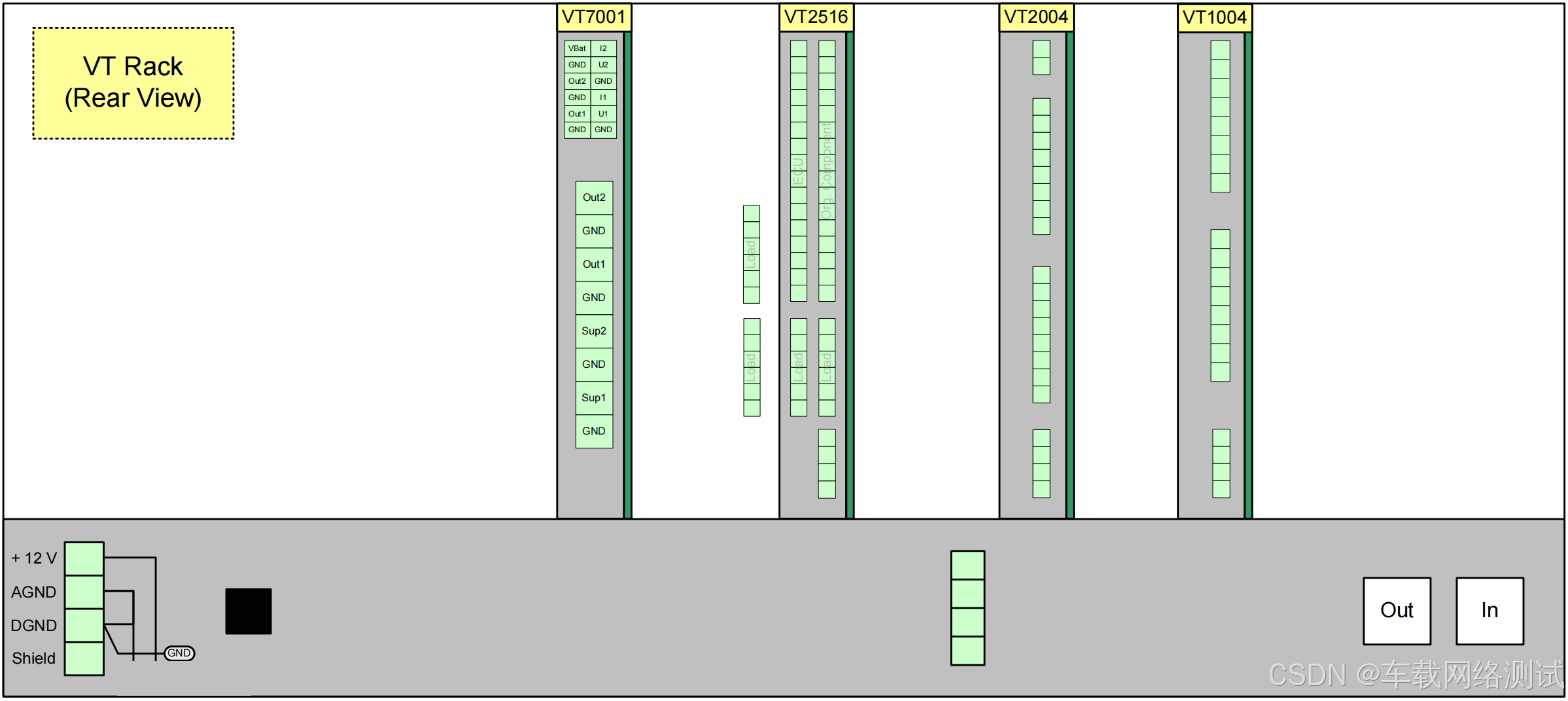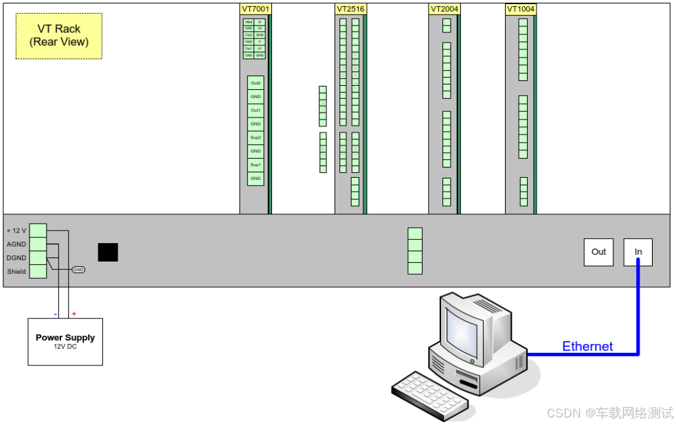 常见的VT机箱就是VT8006,然后加上几块VT板卡,连接如下图