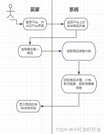 后置条件:买家获取了商品列表,并可以选择查看具体商品的详细信息。