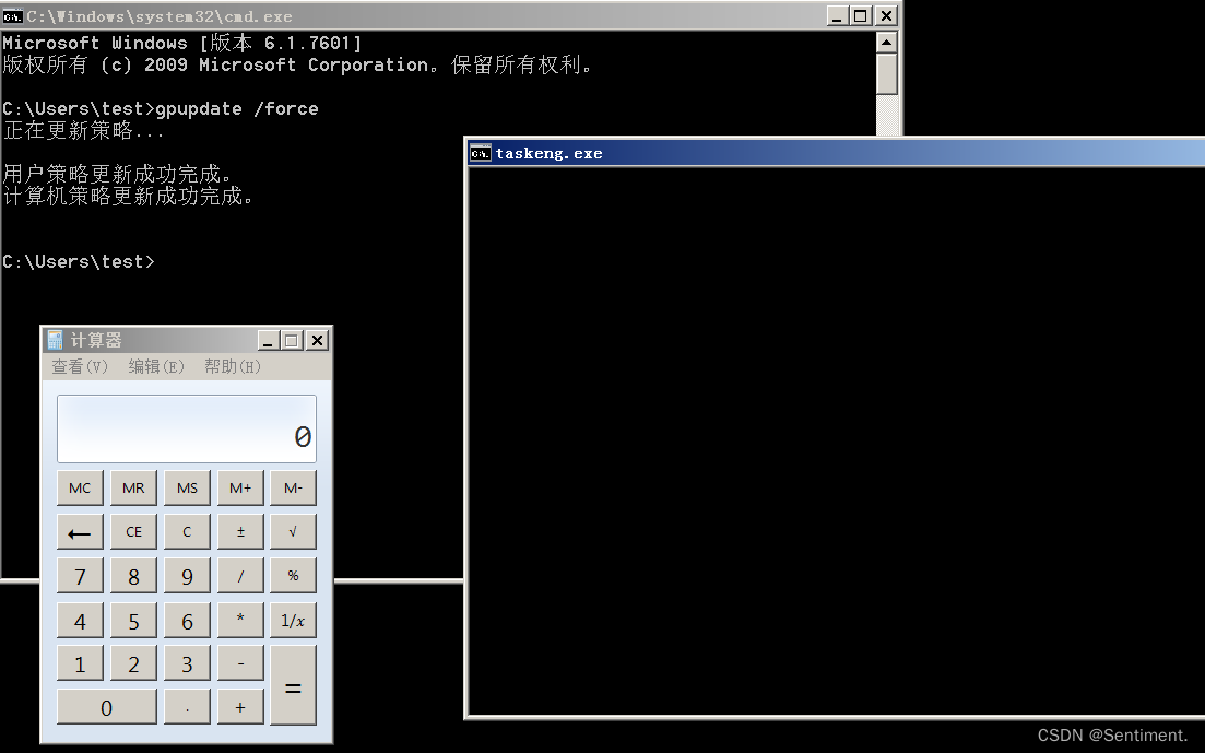 5、gpupdate /force更新组策略,再域用户主机上弹出calc