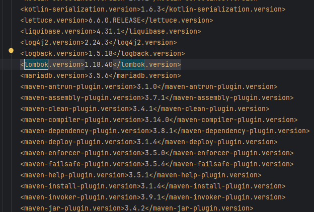 1、(1)先找到当前springboot项目兼容的lombok版本,从pom.xml文件开始依次ctrl+鼠标左键进入查找兼容的lombok版本。