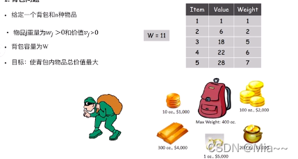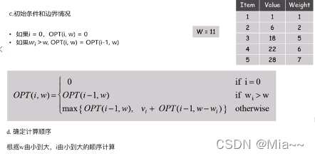 第二个定义中加入w容量,每放进一个物品就要减去此物品的重量。