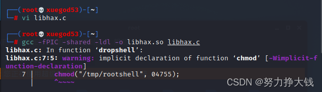 gcc -fPIC -shared -ldl -o libhax.so libhax.c #编译