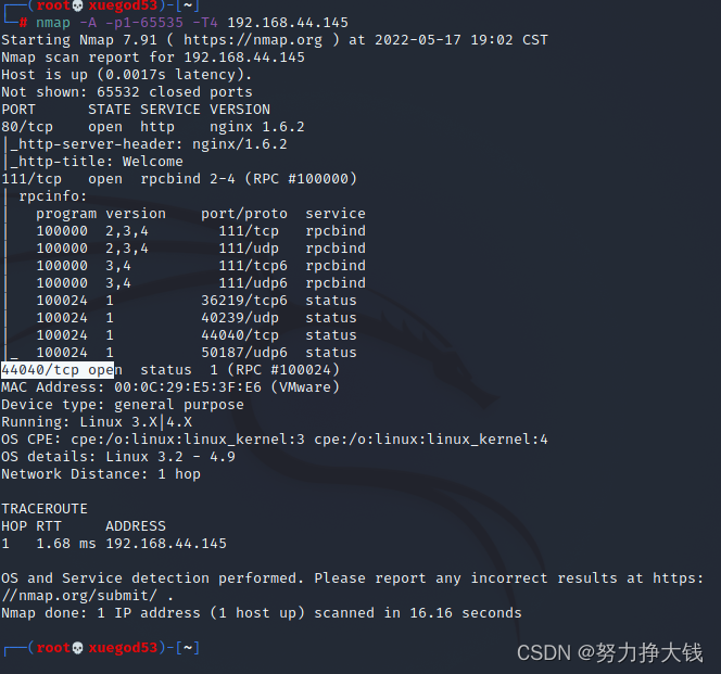 发现有一个80端口和111端口并且运行着rpcinfo服务,44040