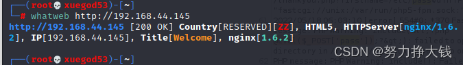 执行的内容会被日志记录下来,通过whatweb查看到了是nginx1.6.2版本的