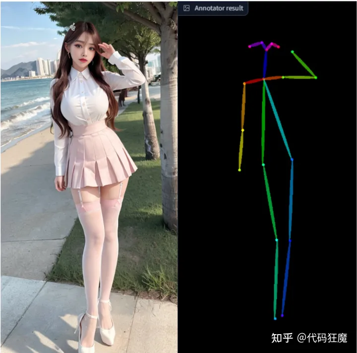 - 如何:如果使用OpenPose作为预处理和模型,那么点击该按钮之后,可以看到一张通过OpenPose模型提取的人物骨骼图片。
