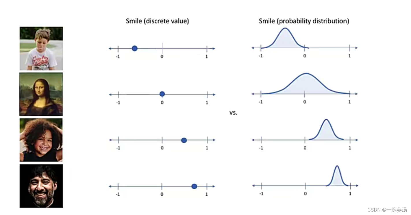 - 从直观的角度理解,输入编码不再是点,而是概率分布。