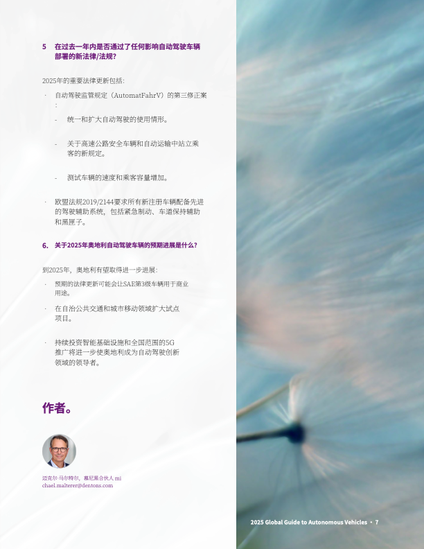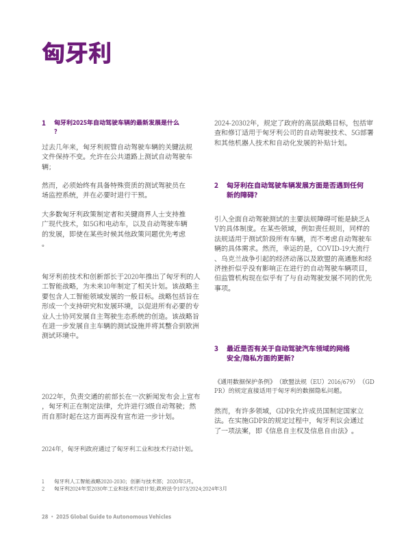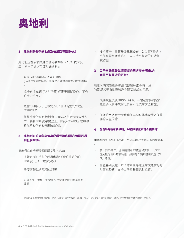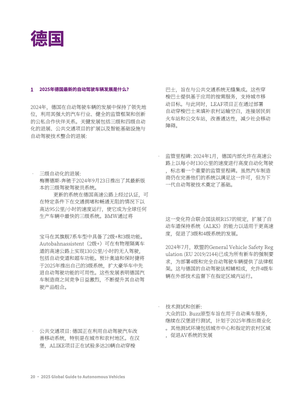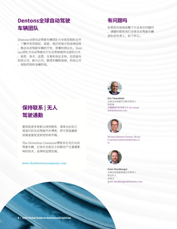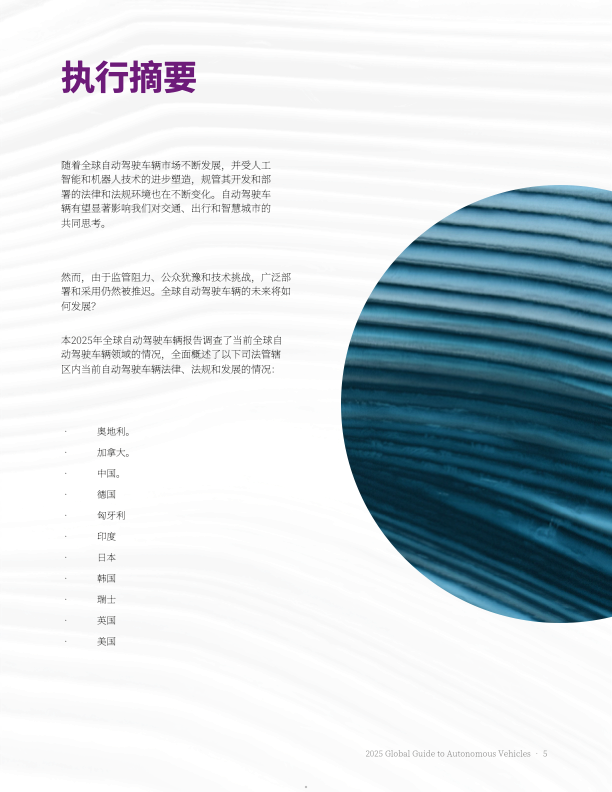 该报告由大成 Dentons 发布,聚焦全球自动驾驶汽车发展动态,覆盖主要国家 / 地区的政策法规、技术进展、产业实践及未来趋势,核心内容如下:
