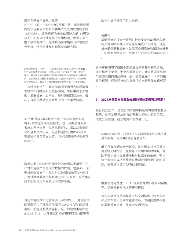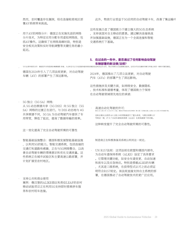 国家战略布局:中国、美国、德国等通过立法明确测试许可、责任划分(如英国《自动驾驶车辆法案》引入 “授权自动驾驶实体” 概念);欧盟推动 UN R157 等国际标准落地。