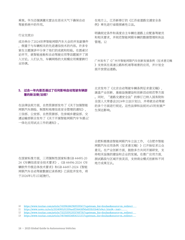 联邦与州协同:特朗普政府推出 AV 政策 5.0,强调创新与安全平衡;加州、亚利桑那州成为测试热点,Waymo 在迈阿密扩大 Robotaxi 运营。