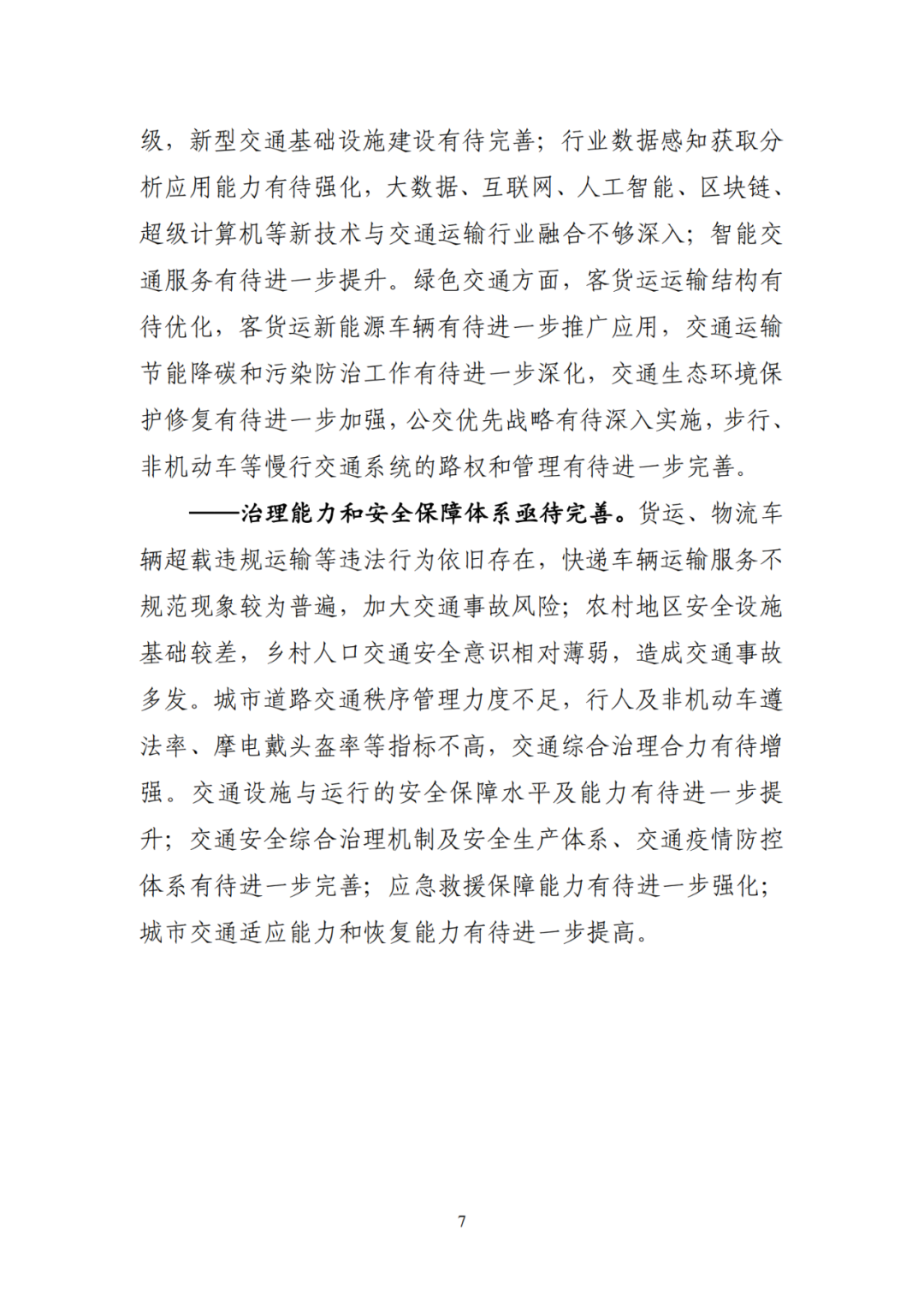 智慧绿色发展水平不足,新技术与交通融合不深,新能源应用和慢行系统建设需加强。