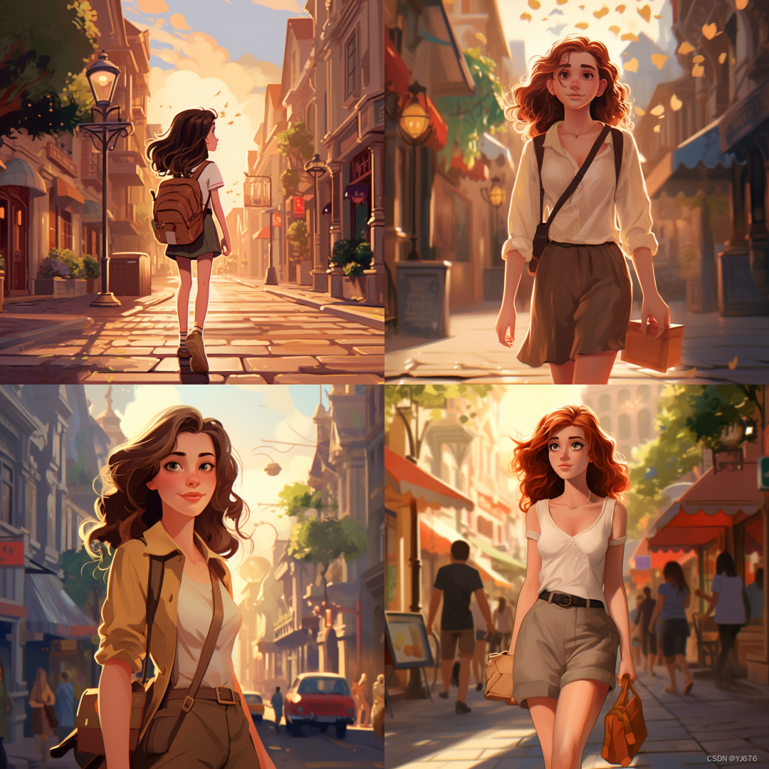 提示词:迪士尼风格,一个女生,走在街上,8k --ar 1:1