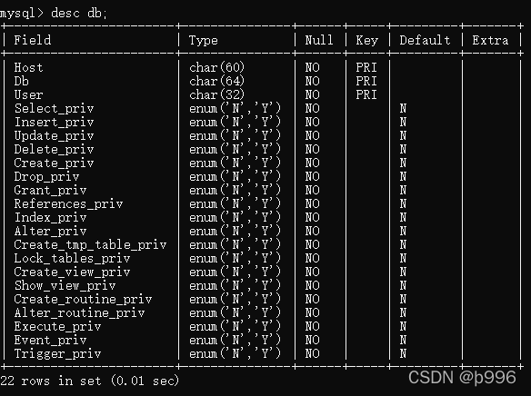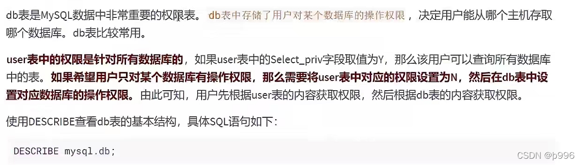 db表体现的是某一个用户对于某一个数据库的相关操作权限。
