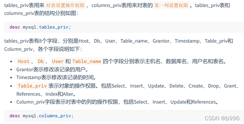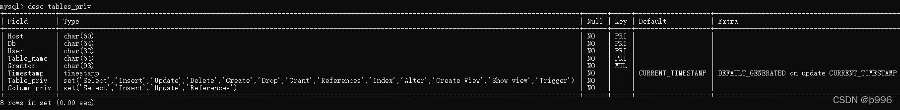 tables_priv表 关于具体的某一个表的相关权限。(由四个组成一个联合主键,如上)