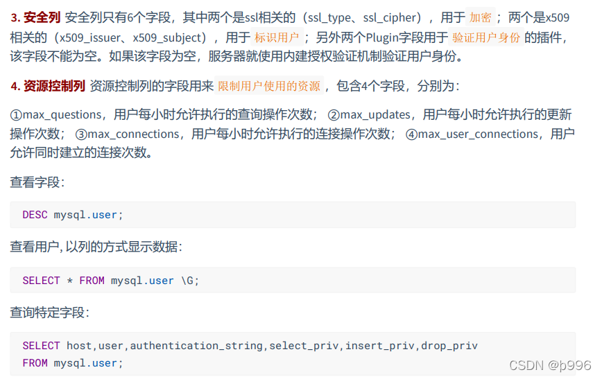 这些字段可以分成4类,分别是范围列(或用户列)、权限列、安全列和资源控制列。