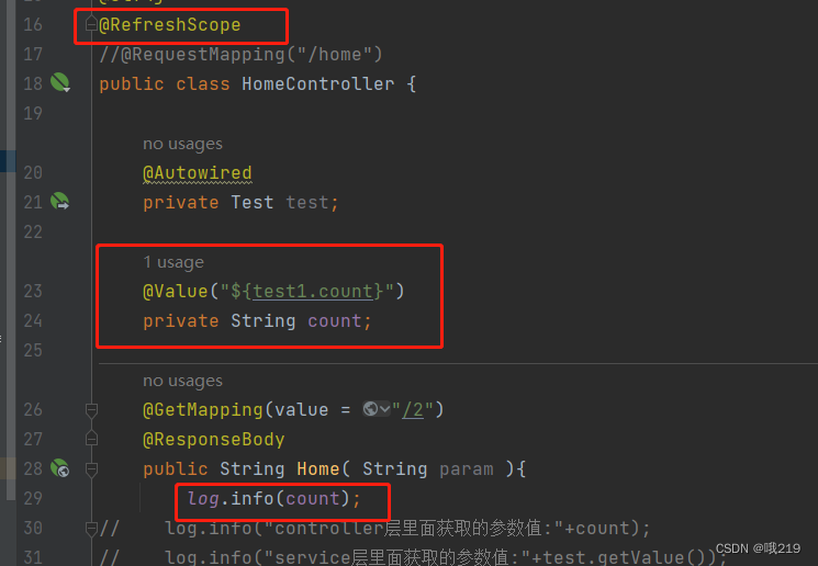 5.添加@RefreshScope注解,使用nacos配置文件中的配置参数